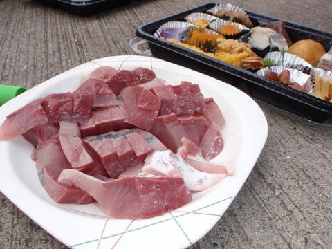 40〜50cmの取れたてのハマチを、ボスが500円で買ってその場で刺身にしてもらいました。