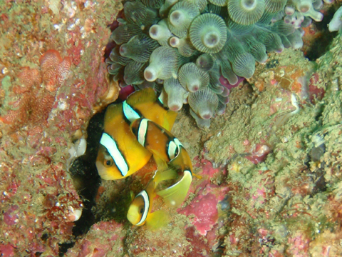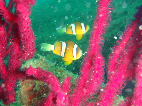 クマノミとイソギンチャクのショットにチャレンジ。 なかなか難しい。