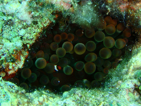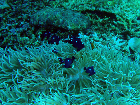 クマノミがたくさんいるポイント。 トウアカを除く5種類ものクマノミがいた。 セジロクマノミと初めての遭遇。 これでクマノミは全制覇!!
