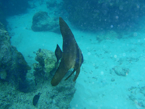 まずはチェックダイブ。 沖縄の海なのに透明度5〜6mなんておりえない!! 台風なんて嫌いだ〜。