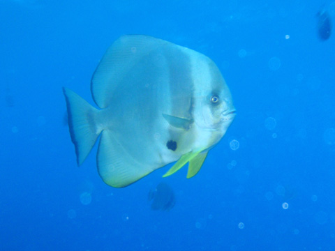 餌付けされているようで、ツバメウオが凶暴だった。 エサのフを出すと、怖いくらいの勢いで食べに寄って来た。