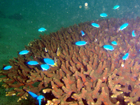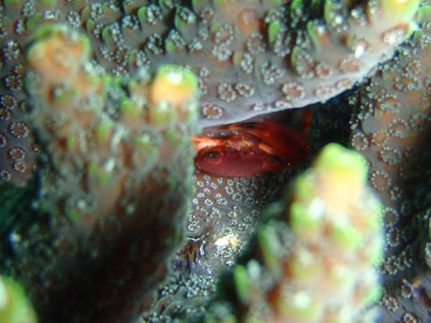 カゴカキダイ, オトメベラ, ソラスズメダイ, フタスジリュウキュウスズメダイ, スミツキトノサマダイ, クマノミ, オジサン, ニザダイ, チョウチョウウオ, サザナミフグ, カサゴ, トゲチョウチョウウオ, キモガニ, サンゴガニ, ハコフグ, サツマカサゴ, アミメサンゴガニ, トノサマダイ(幼魚)
