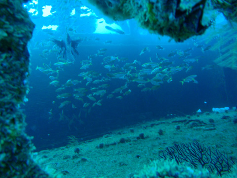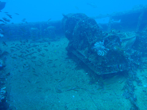 2度目の沈船。 以前来た時は講習だったので、ハナミノカサゴしか見なかったけど、想像以上に魚がいてびっくりした。