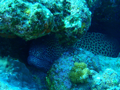 すごく大きいハタに驚いた。 あとで調べたらタマカイという魚らしい。 1m以上で驚いた。