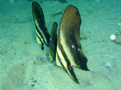 ナンヨウツバメウオの幼魚が3匹もいた。 仲良く寄り添っていた。 前回来た時は1匹だったのに、残りの2匹はどこから現れたんだろう。