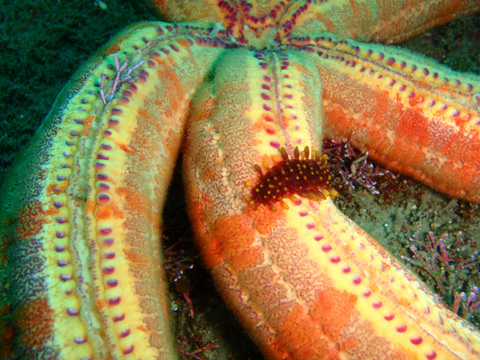 ボラの大群, アカエイ, イロカエルアンコウ, ホクヨウウミウシ科の仲間, ニシキウミウシyg, ヒロウミウシ, ヒナギンポ, オオアカヒトデ, ウツボ, ミギマキ
