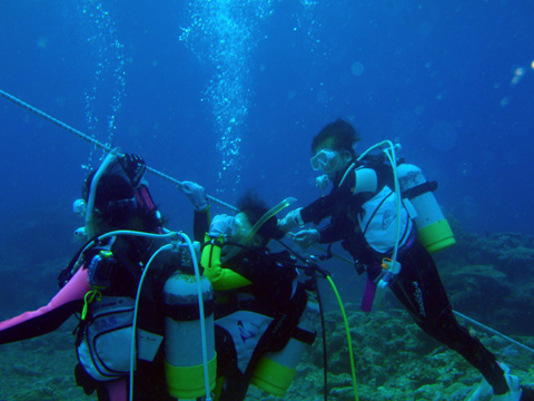 ビデオの講習は、バディとはぐれず、画面酔いをしないようにゆっくりと被写体をおさめること!! ハウジングにいれるとプラス浮力になるので、ちょっと難しかった。 ハウジング用のウェイトを買おうかなぁ。
