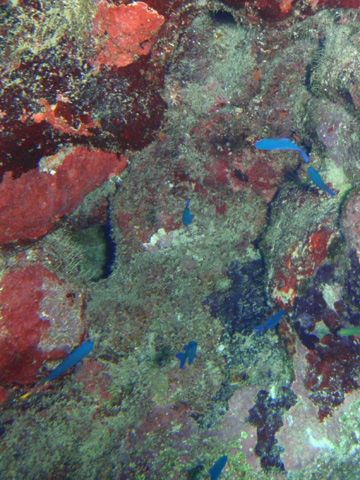 流れていないポイントだけど、流れていることを想定して、ドリフトダイビングのシュミレーション。 初めてフロート&ダイブリールを使用。 リールを巻くときに、糸が絡まって四苦八苦した(汗)。 リールをBCDの右側のフックに吊るしていて、巻きにくかったことが要因。
