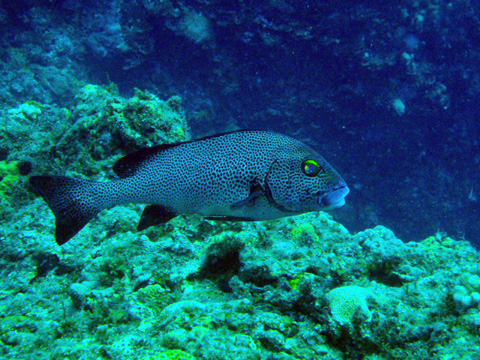 初めての小笠原の海。 蒼くて、魚の固体が大きいのが印象的。