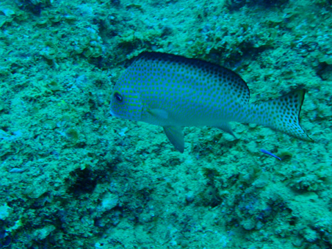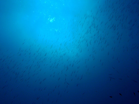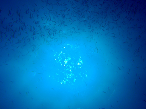 北の根を回ったあと漁礁へ。 イサキとアジの群れが雨のように降り注ぎ、ツバメウオの幼魚やイシダイなどもいた。