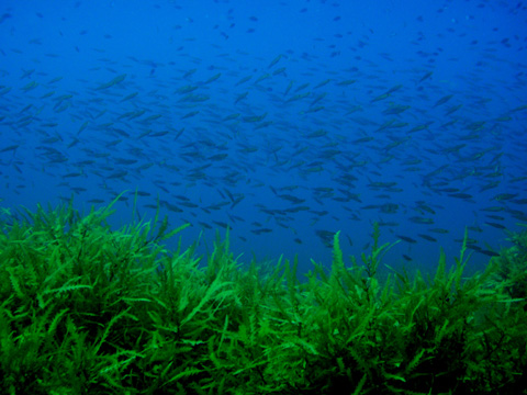 けれど、いろんな幼魚が群れていた。 チャガラに、スズメダイに、ネンブツダイ。 小さくてかわいかった。