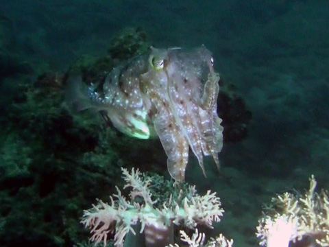 コブシメを初めて海中で遭遇。 意外に逃げ足が早かったので驚いた。
