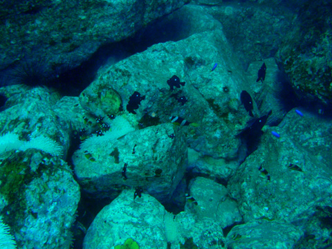 でも、クマノミやミツボシクロスズメダイがたくさん。 カモハラギンポもたくさんいて楽しかった。