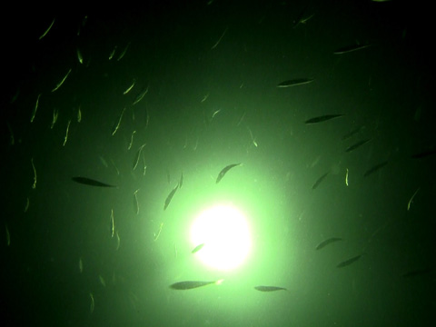 透明度は悪かったけど、アジの量が半端なかった。 集魚灯に映るシルエットが綺麗だった。