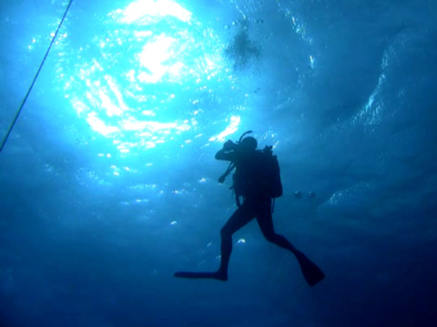 初めてのブルーウォーター。 外洋の沖なので、予想以上にうねりがあった。 でも、海の中に入ると全然穏やかで、数ノットで流されているとはとても思えないくらいだった。